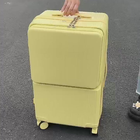 Our luggage features a built-in phone holder, drink holder, and USB charging port — perfect for modern travelers who value convenience